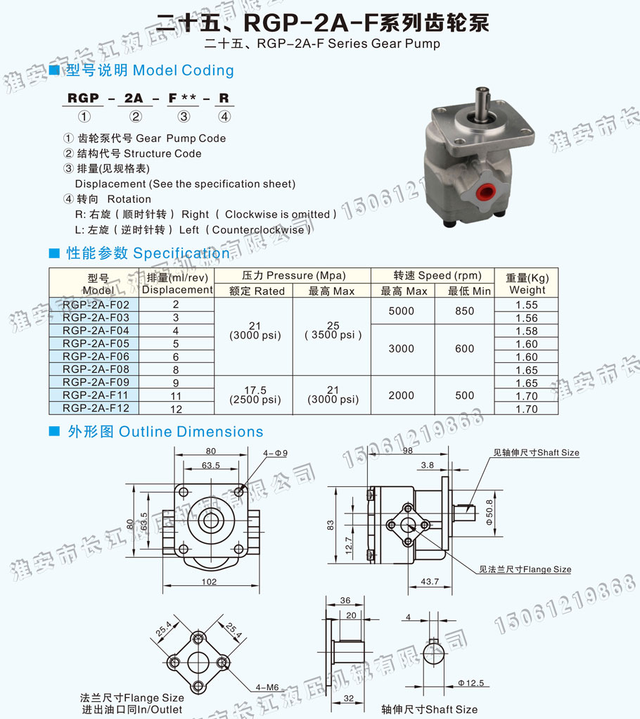 RGP-2A-F系列齒輪泵